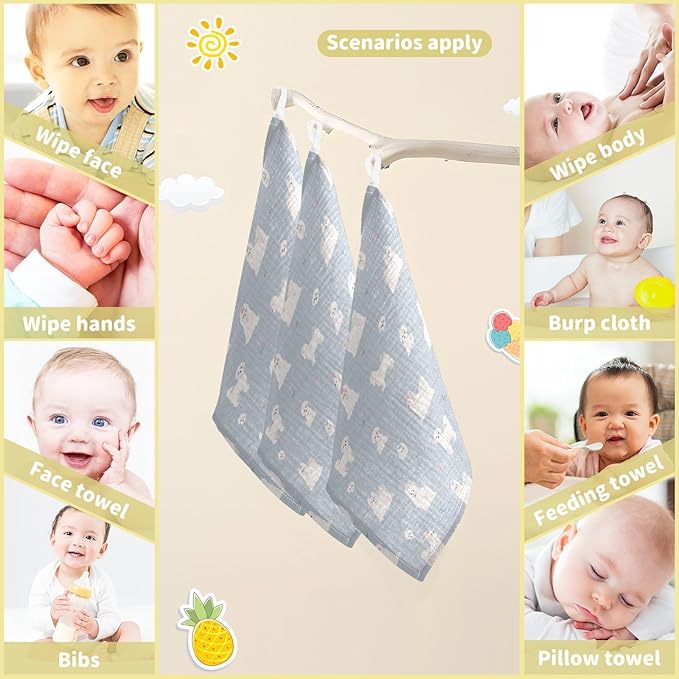 • Versatile Use & Multiple Colors : Can be used for a variety of purposes, including as baby wipes,saliva towels, bath towels, pillow towels, or as burp towels to clean up when at meal time.