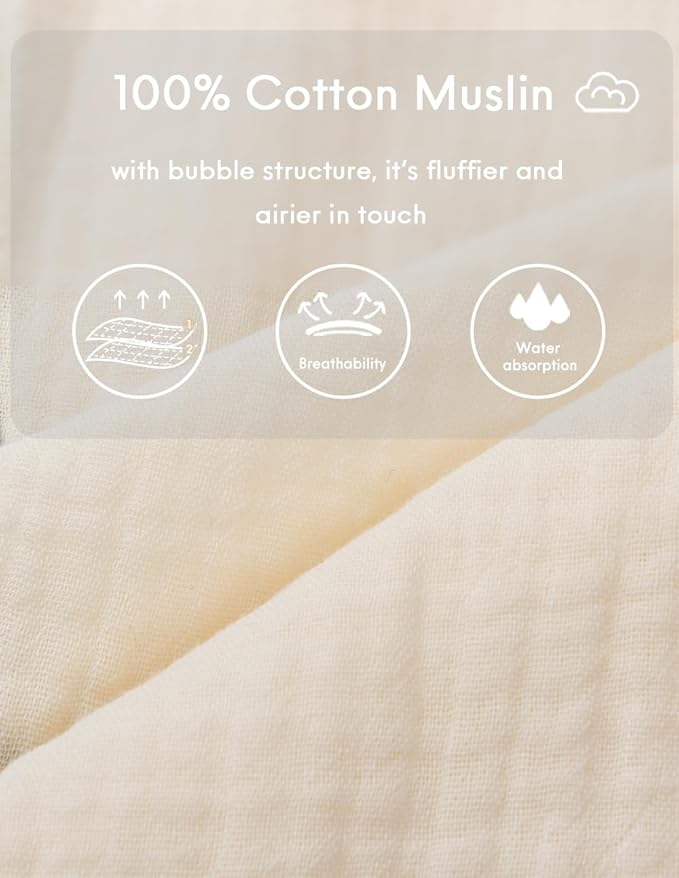 • Lightweight & breathable muslin fabric