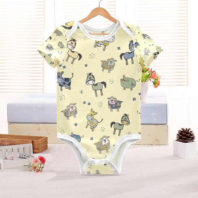 • 🌈Soft Material:Cows Horses Pigs Sheep Newborn Infant clothes is made of cotton fabric, baby outfit Bodysuit is soft comfortable and breathable,it is suitable for babies summer wear.
