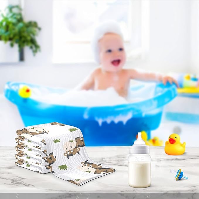 vvfelixl Cotton Brown Cow Grass Muslin Washcloths - Soft Baby Face Towel for Newborns, 11.8 X 11.8 Inch, 3 Pack