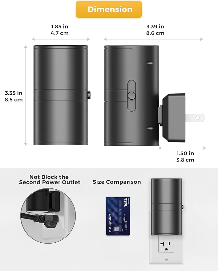 • Product Dimensions : 3.39"D x 1.85"W x 3.35"H