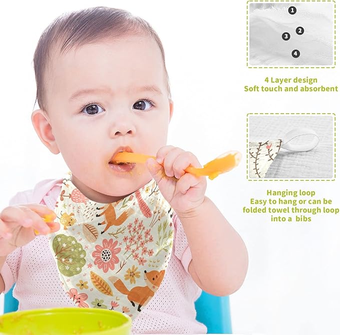 vvfelixl Baby Washcloths Cotton Foxes and Flowers Flesh Colored Baby Muslin Washcloths Soft Baby Face Towel for Newborn Infants Baby Wipes, 11.8 X 11.8 Inch, 5 Pack