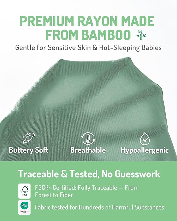 • 【Skin-Friendly and Cozy】4 Pack. Discover sustainable luxury with FSC Certified Responsible Rayon made from Bamboo. Buttery Soft, hypoallergenic, and moisture-wicking. Stretchy to conform to baby's body. Tagless labels.