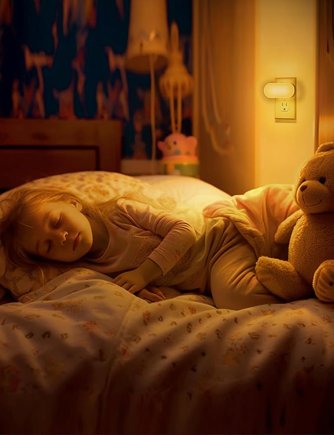 • 【Easy To Use】: Humanized compact design. Fits into just one-half of any type of standard wall outlet, leaving the second opening free. Our night lights plug into the wall directly, making them easy to install and convenient to use in any room of your home.