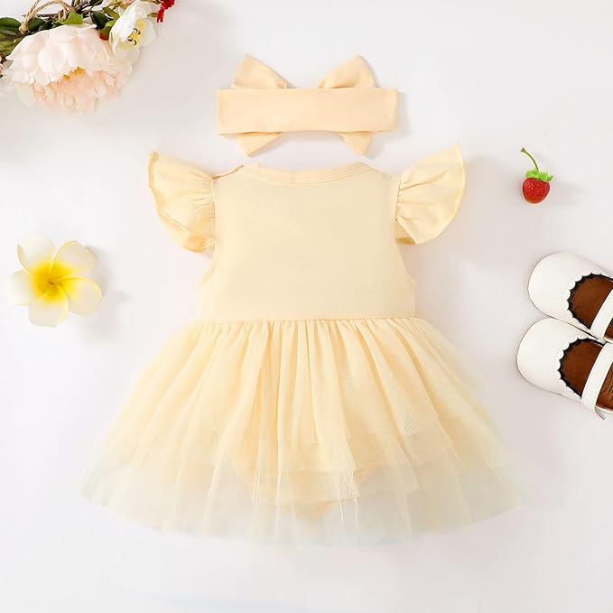 • You will receive: One Ruffle sleeve romper tulle dress and One cute headband.