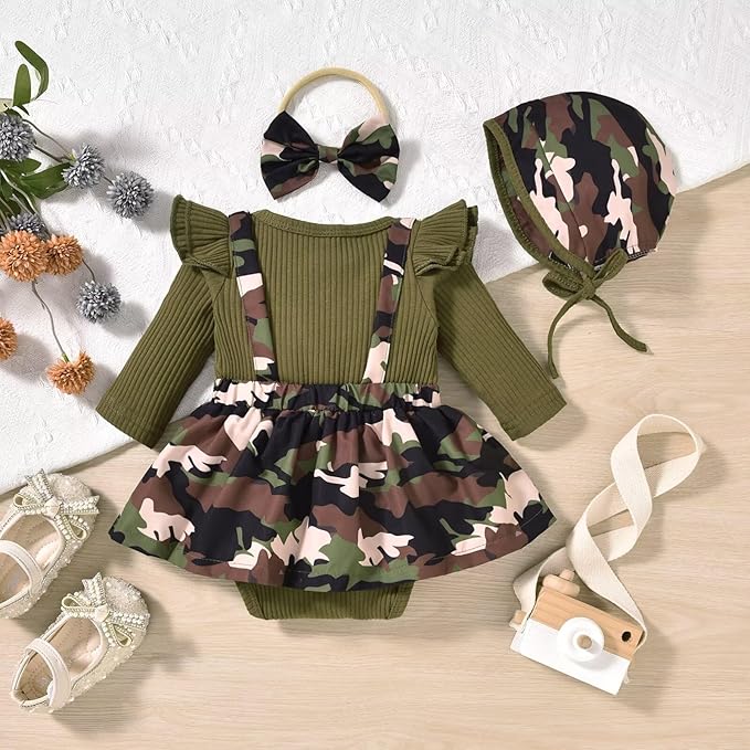 Unutiylo Preemie Newborn Baby Girl Clothes Romper Suspender Dress Fall Winter Outfits Ruffle Long Sleeve Jumpsuit