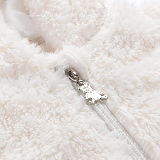• Design: The toddler fleece jacket has two bear ears on both sides of the hooded, make your child look like a cute bear when playing outside. This fluffy baby zip up hoodie has two cute bear pockets on the front that can hold small toys or candy.