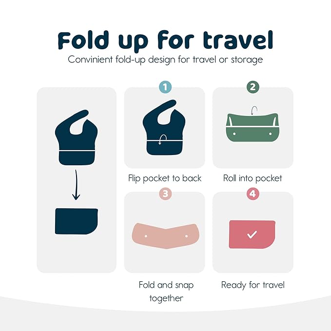 • MESS-PROOF MEALTIME: Our mess-proof baby food bibs feature a deep catch-all pocket that captures crumbs and spills, keeping clothes and tables clean. Made with lightweight, water-repellent fabric, these waterproof bibs make everyday meals simpler and cleaner.