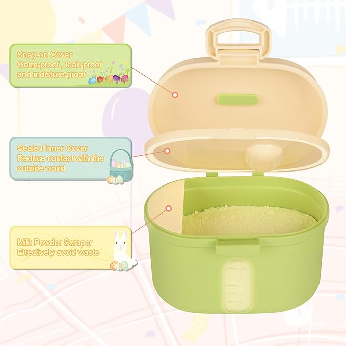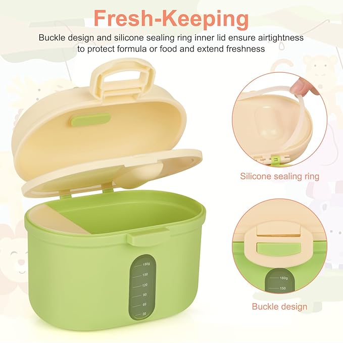 • Sealed Milk Powder Container - Inner lid attach silicone sealing ring , the outside lid have buckle design, there are double barrier to ensure the freshness of milk powder and food.
