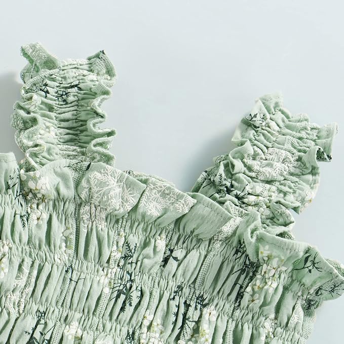 • Feature: Newborn baby girl strap bodysuit, sleeveless, solid color/floral/plaid print, backless, frill, shirred detail, good stretch. Snap closure for easy diaper changing.