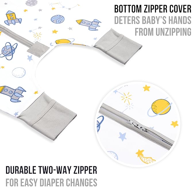 • 【TODDLER-FRIENDLY, PROVIDES SAFE & SECURE SLUMBER】— Our sleep sack walker has a safety tab that guards your toddler's neck & chin, promoting a consistently safe & cozy fit. It comes with adaptable foot openings that can be effortlessly flipped to provide snug warmth for tiny toes and leg openings for increased mobility. Our toddler sleeping sack also has a bottom zipper cover that deters your baby's hands from unzipping the blanket, ensuring a safe & uninterrupted slumber.