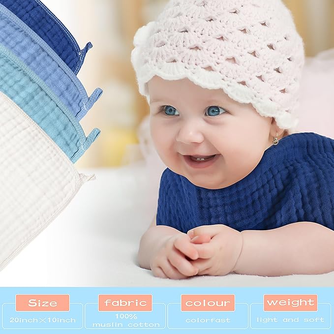 • What You Will Receive: you will receive 20 pieces of burp clothes with sizes of 25 x 50 cm/ 10 x 20 inches, providing you with a sufficient supply of soft and comfortable cloths for your baby's needs; There are four colors for you to choose from