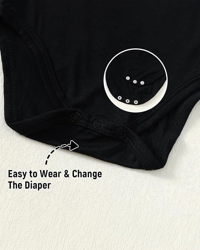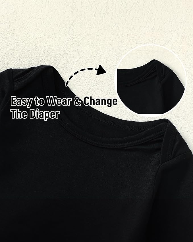 • More breathable and baby-friendly material- 94% Rayon Derived from Bamboo, 6% Spandex.Our newborn onsies unisex are soft and comfy for fall winter fun with baby.