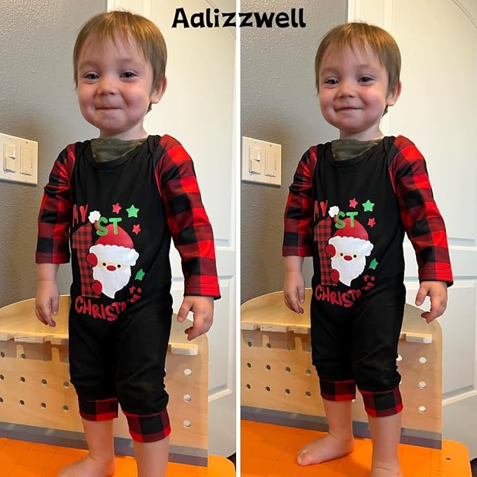 Aalizzwell Infant Baby Boys Girls First Christmas Outfit Xmas Romper Elf Santa Clothes