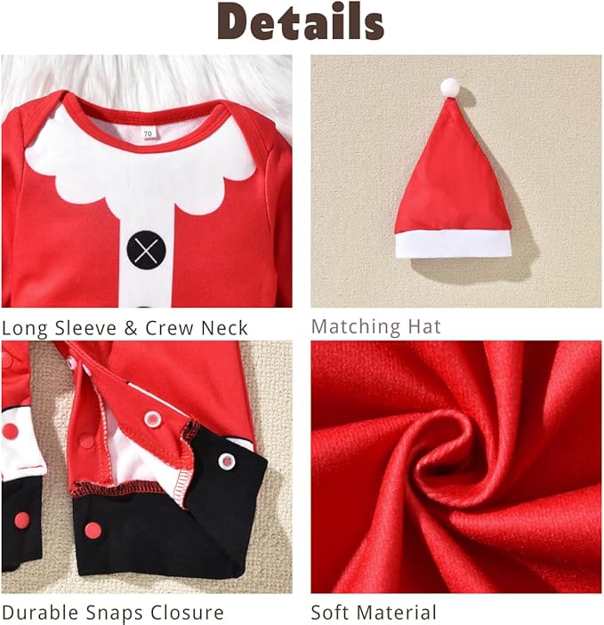 • PREMIUM COTTON MATERIAL : Crafted in soft cotton blend material, high absorbent and breathable, cozy feel of this baby clothing to keep little baby warm and comfy all autumn, spring & winter. Are you ready to wrap your little boy in this cute baby boy Christmas romper?