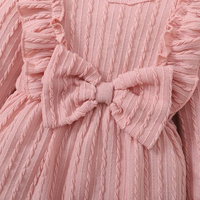 • Cute infant girl bodysuit,ruffle long sleeve sweater romper with bow knot front.The snap closure on the bottom are easier to wear and change diapers.