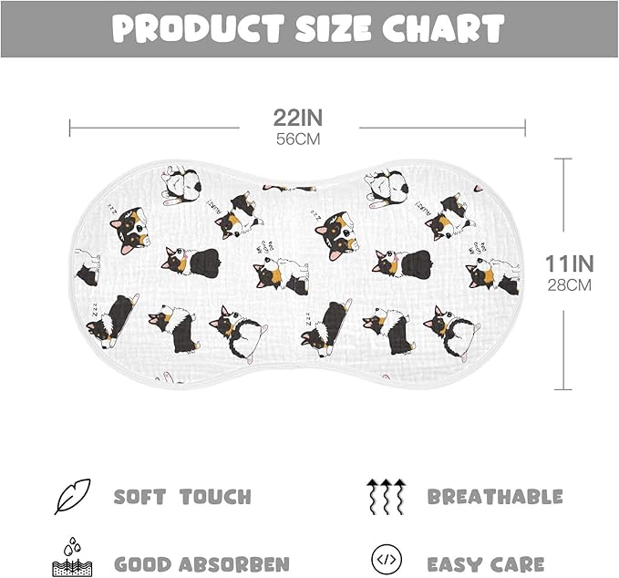 • ❤Maximum Shoulder Coverage : Our burping cloths for baby are specially designed in figure-8 to ensure a secure fit, preventing the burp rags from slipping. Measuring 22" x 11", this burp cloth provides ample coverage for your shoulders.