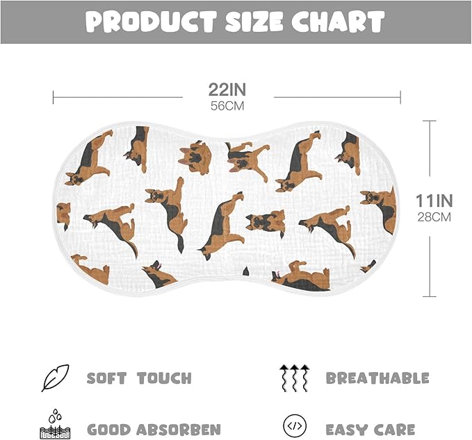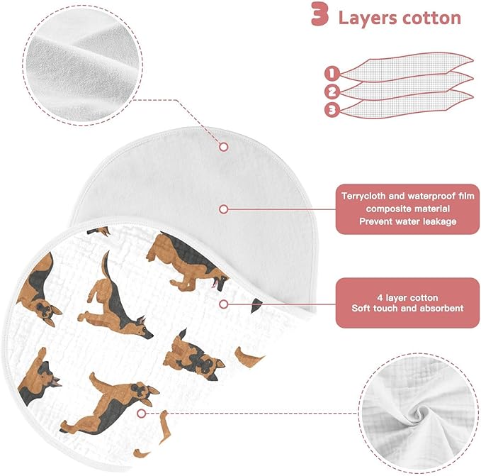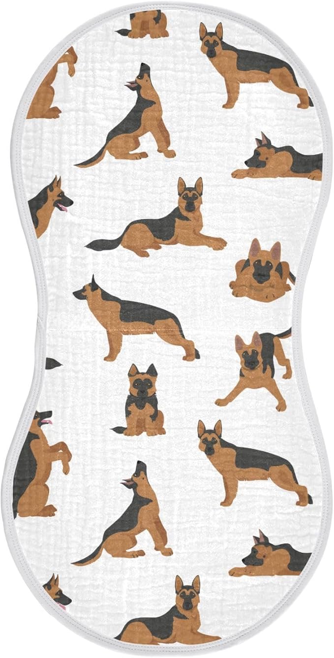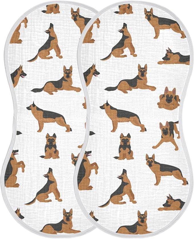 vvfelixl Muslin Burp Cloths German Shepherd Dogs Baby Washcloths for Baby Girl Boys 2 Pack White