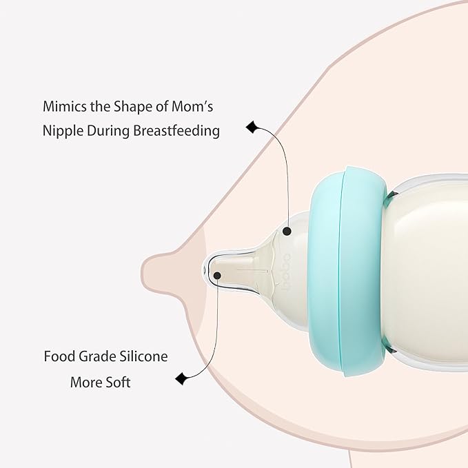 • Silicone Nipple: The nipple is made of food-grade silicone and is super soft, allowing babies to suck naturally. The bottom of the nipple has intelligent pressure regulating valve, balance internal and external pressure, milk and air separation, to avoid the baby breathing too much air caused by colic flatulence.