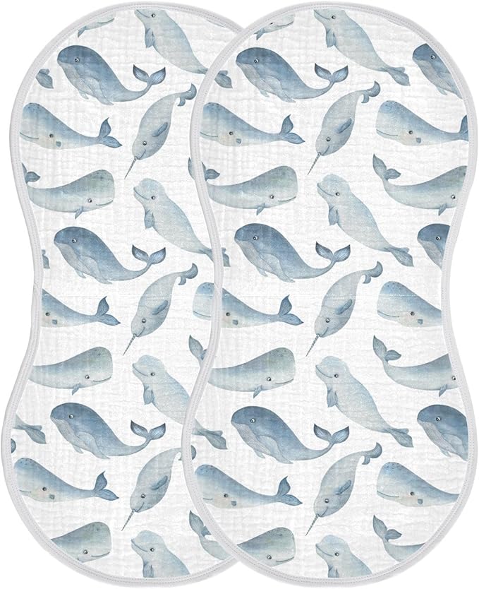 vvfelixl Muslin Burp Cloths Whale Dolphin Baby Washcloths for Baby Girl Boys 2 Pack