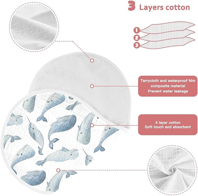 vvfelixl Burp Cloths Whale Dolphin for Baby Boy Girls Baby Washcloths Burp Rags 1 Pack