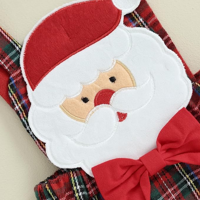 • Design--- Infant baby girl Christmas romper, Ruffle long sleeve, red plaid, crewneck ribbed knit romper, cute bowknot, suspender bodysuit with elastic waistband, snap closure, easy to put on/take off and change diapers, newborn girl christmas romper dress, with bow headband, Make your baby more attractive and fashionable.