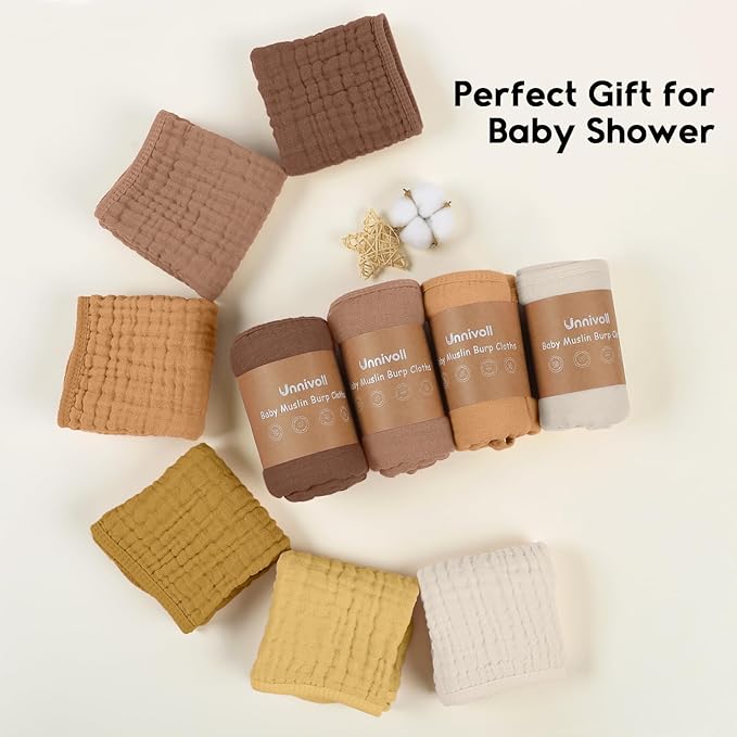 • ❤Safety Comes First: Made from 100% premium quality cotton,Unnivoll muslin burp cloths is certified to meet Consumer Product Safety Commission (CPSC) guidelines, eliminate all potential risks and provide a soft, breathable, cloud like comfort for your little one. The natural muslin is also suitable for all skin types including sensitive and delicate skin, perfectly use on the face, hand and body.