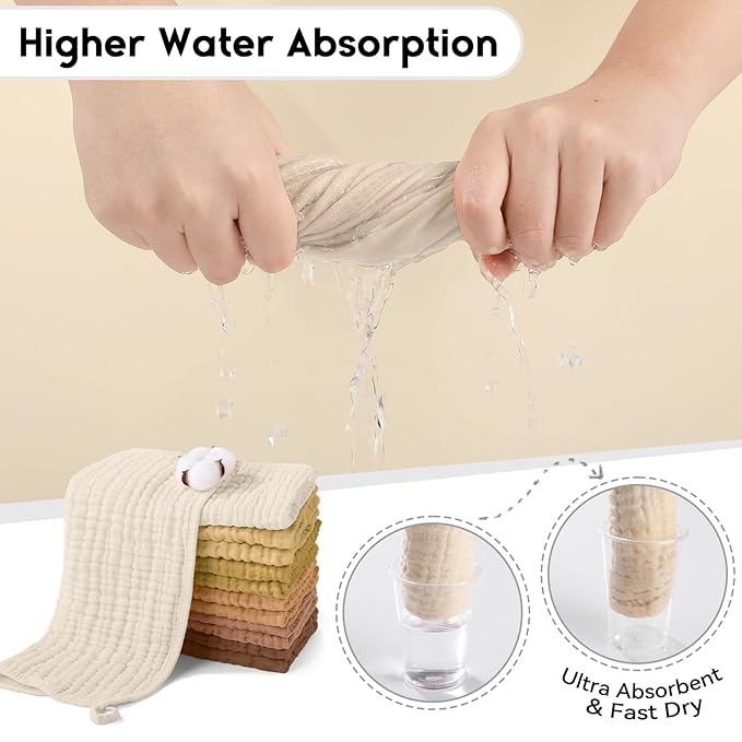 • ❤ Verstile Baby Essentials: Designed with a gender-neutral color, our muslin burp cloths will be a thoughtful present for any occasion like baby shower, baby registry, birthday, Christmas, or you can use it as burp rags, baby bibs, baby washcloths and towels, baby wipes, anything else that's available. A must-have for teething baby and mess no more.