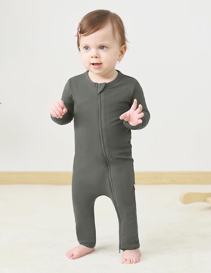 • FUNCTIONAL DESIGN: Fold-over feet design can keep babies warm when they sleep and play. Double zippers are perfect for new parents for quick diaper or outfit changes. Neck tab can cover the zipper to keep it away from the chin.