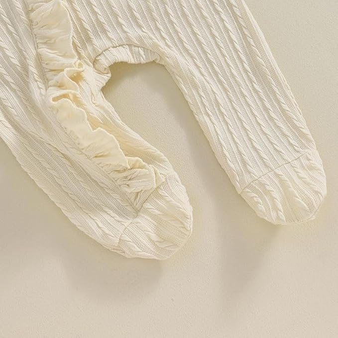 • DESIGN: Boutique Long sleeve solid color jumpsuit with cute ruffle on the side snap button and bottom, textured cabel knitted plain footies with mitten cuffs, zipper up footed jumpsuit, keep warm in winter, super cute coming home outfits for baby girl in fall and winter, boho baby girl clothes