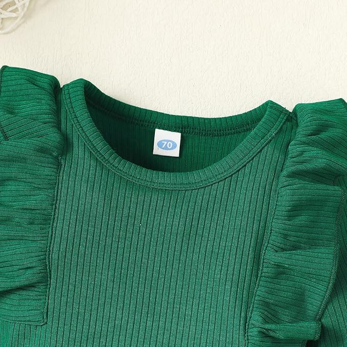 0-24M Infant Ribbed Romper Baby Girls Knit Ruffle Bodysuit Toddler Girl Solid Color Jumpsuit Holiday Shirt Tpos