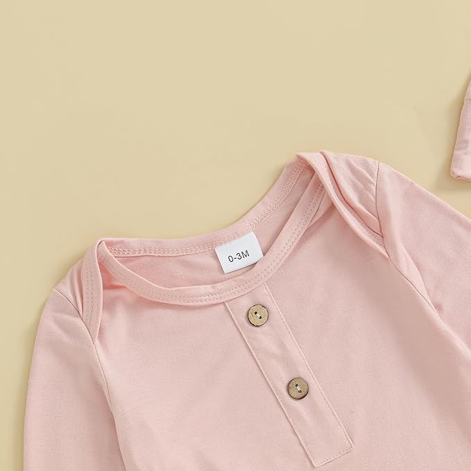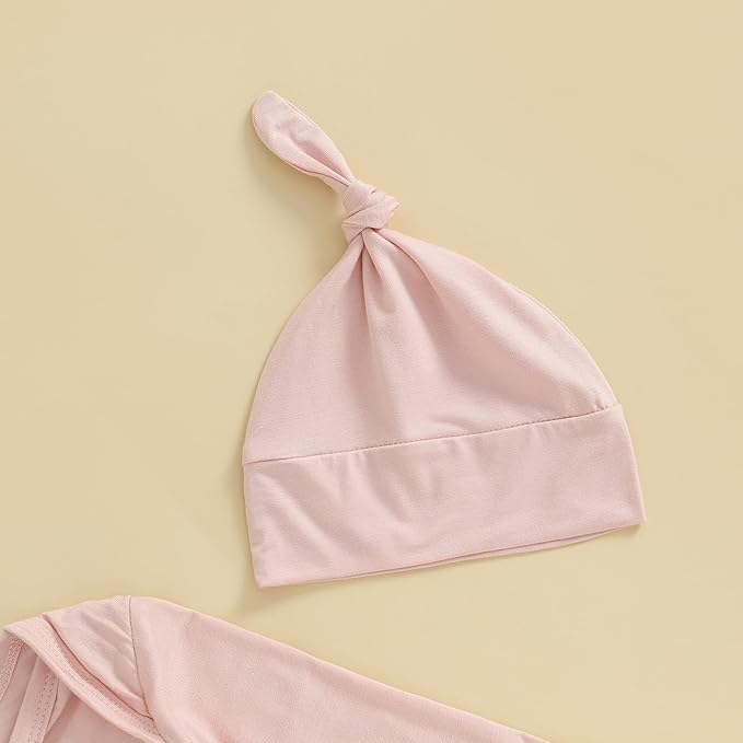 • Feature: These newborn gowns for girls boys, long sleeve gown rompers in different sweet candy colors, easy diaper change, no button, zipper, or messy strings to deal with. These solid color baby boys girls knotted gown hat sets is cute and sweet for every babies