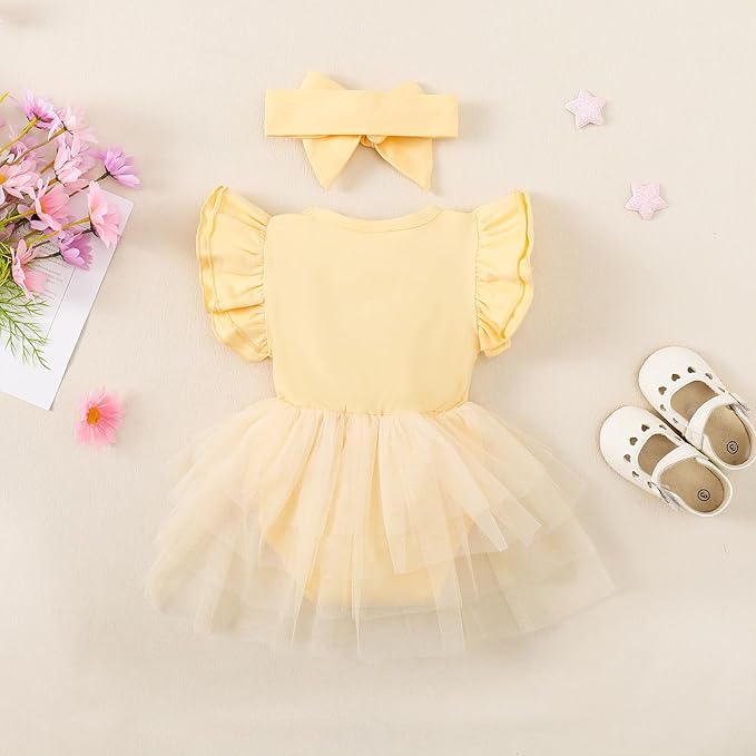 • ❤Design: baby girls romper dress, Butterfly sleeve, crew neck, patchwork ruffle romper and headband, 4-layer mesh patchwork puffy skirt romper, crotch button for easy diaper change. make this newborn baby girl outfits look super adorable. Multiple colors can be selected, Your princess will get tons of compliments in it.