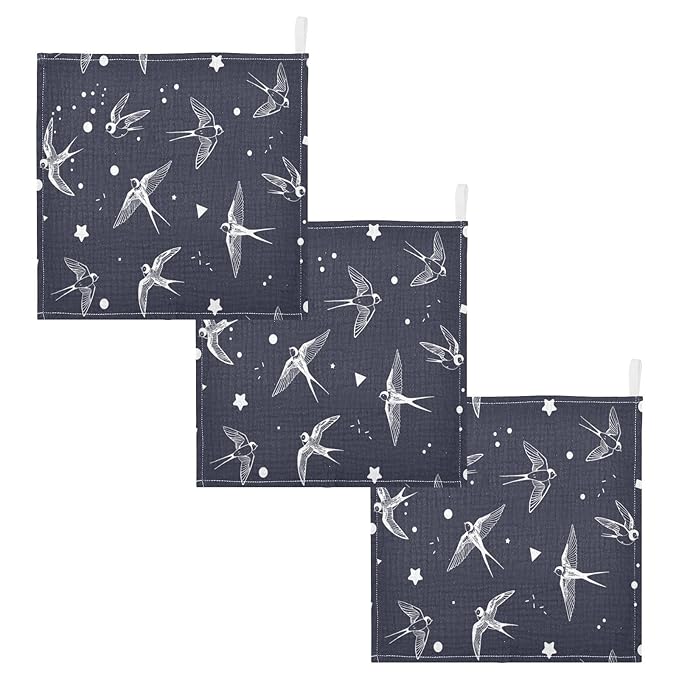 vvfelixl Baby Muslin Washcloths Swallow Bird Baby Burp Cloths Cotton Baby Face Towel for Newborn Infants Boys Girls Soft and Absorbent 11.8 X 11.8 in, 3 Pack