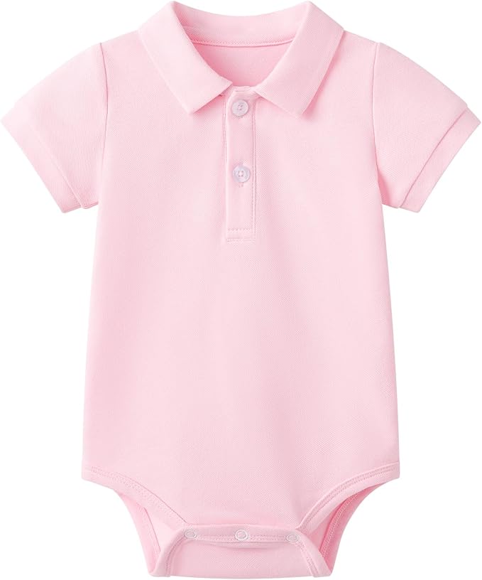 • UNIQUE DESIGN - Polo collar, short sleeve, solid pique bodysuit, Your baby will get tons of compliments on it