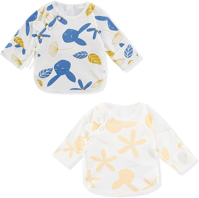 Newborn Side snap Shirts for Baby Girls & Boys, Purcotton Baby Girls & Boys Top Tees with Cute Patterns, 2-Pack