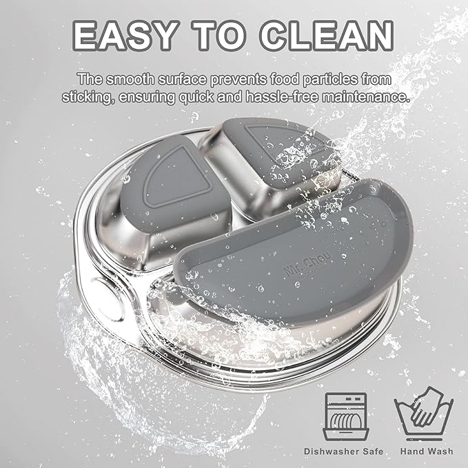 MR. CHOU Stainless Steel Baby Suction Plate, Divided Plates for Babies & Toddlers, 100% Food Grade Kids Plates for Baby Led Weaning, BPA Free Toddler Feeding Supplies, Dishwasher Safe, Gray