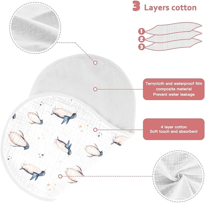 • ❤Soft & Absorbent : The baby burp cloths are crafted with 100% cotton which is soft, super absorbent, machine washable, and very durable. The muslin baby burp cloths will absorb liquids in seconds, protecting you from accidental spit-ups and drools. Simplify your parenting!One of the must-have baby essentials.