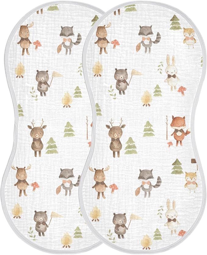 vvfelixl Baby Burp Cloths Woodland Animals Watercolor Baby Newborn Cotton Burping Cloths Set Baby Washcloths 4 Pack White