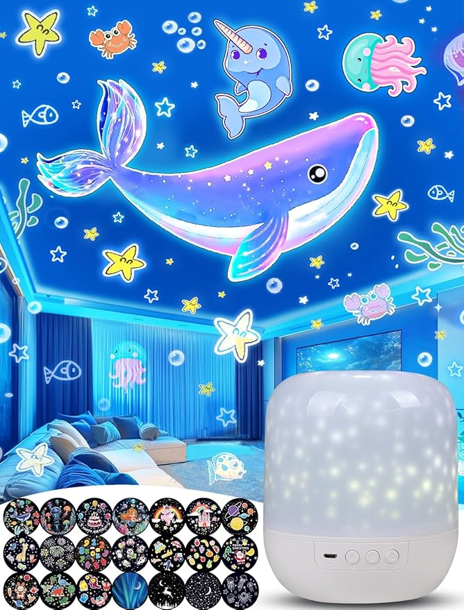 21 Sets of Films + Kids Night Light Projector, Projector Night Light for Kids Bedroom, Ceiling, Star Galaxy Projector with 360° Rotation, Dimmable for Baby Toddler Girl, Christmas, Nursery, Room Decor