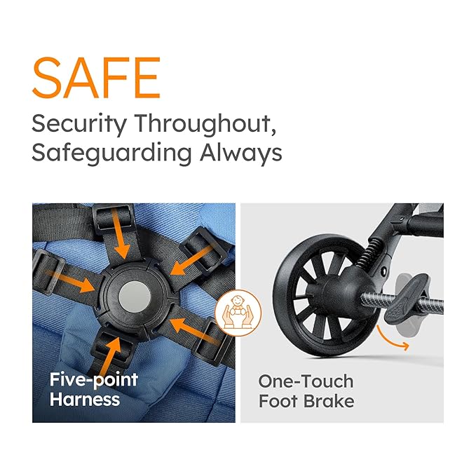• One-Second Fold & Safety-First Design: Fold or unfold in just two steps. Features a one-click 5-point safety harness with quick shoulder height adjustment and a carry strap for easy transport. The MAMAZING foldable stroller exceeds CPSC and ASTM standards and uses OEKO-TEX certified fabrics, ensuring a safe and worry-free environment for your baby
