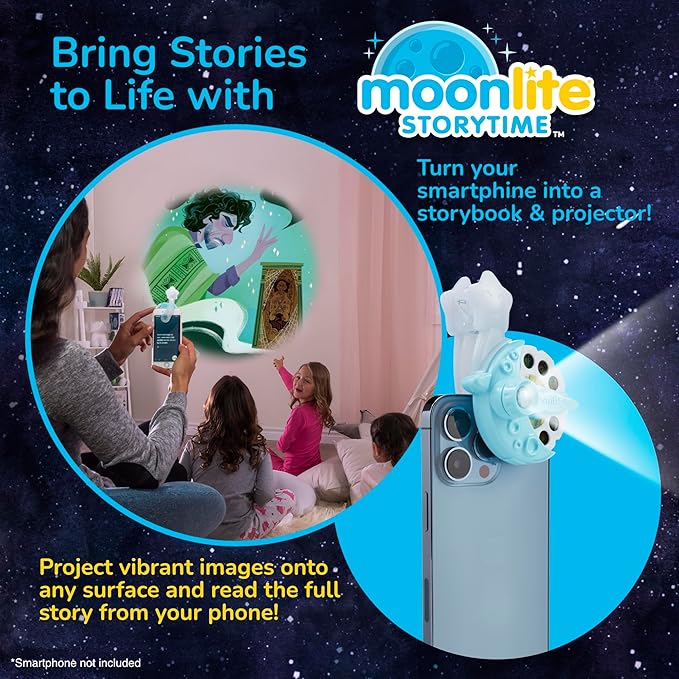 • THE MAGIC OF MOONLITE - Moonlite Storytime transforms together time into a special experience for parents, caregivers, and children. The 4 Story Collection with Projector uses ambient music, playful sounds, and big, bright storybook images to tickle your child’s senses. Moonlite Storytime creates a magical and unique bonding experience that children love and parents look forward to.