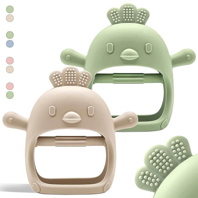 • Soothing Teething Relief for Little Hands: Our silicone teething toy for babies is made to fit securely on small hands, making it perfect for babies who can't hold teethers yet. The built-in grip bar helps them grasp better, while the soft silicone texture protects them from chewing their hands. The playful character arms mimic a nipple to calm fussy little ones.