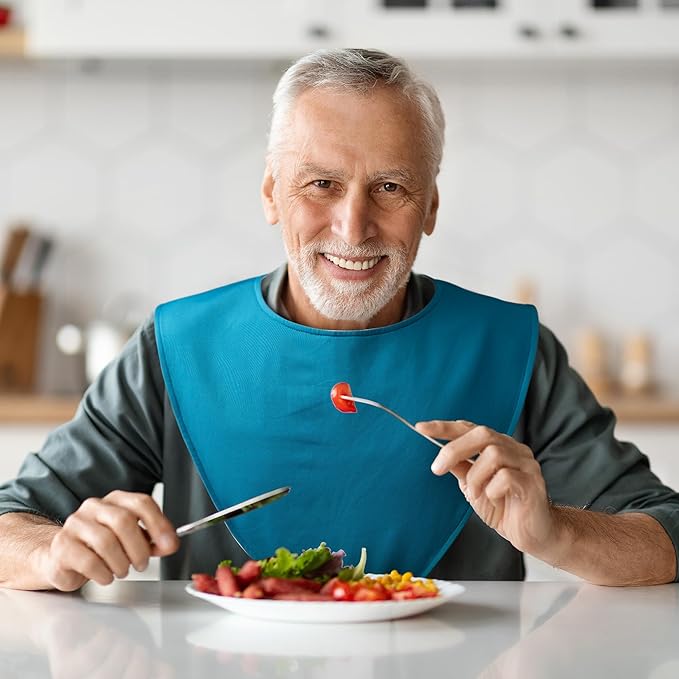 • SOFT & ABSORBENT: Our bibs are large, soft, double layer, and super drool absorbent. 100% Premium cotton front and micro-fleece backing. Keeps your love one dry and comfortable throughout the day.