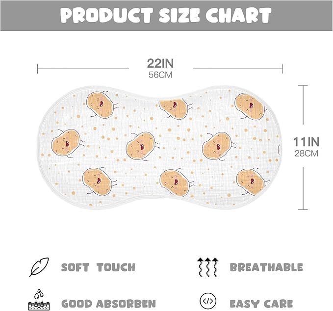 vvfelixl Muslin Burp Cloths Kawaii Potatoes Baby Washcloths for Baby Girl Boys 2 Pack