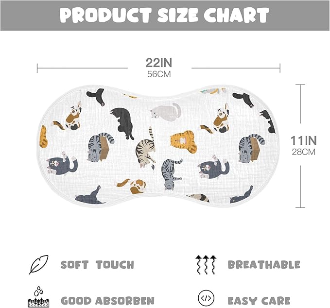 • ❤Maximum Shoulder Coverage : Our burping cloths for baby are specially designed in figure-8 to ensure a secure fit, preventing the burp rags from slipping. Measuring 22" x 11", this burp cloth provides ample coverage for your shoulders.