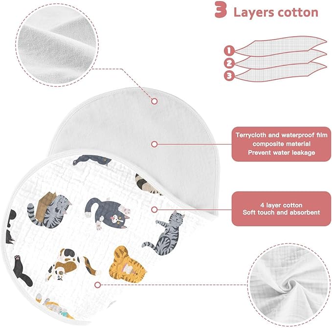 vvfelixl Muslin Burp Cloths Cartoon Cat Baby Washcloths for Baby Girl Boys 2 Pack