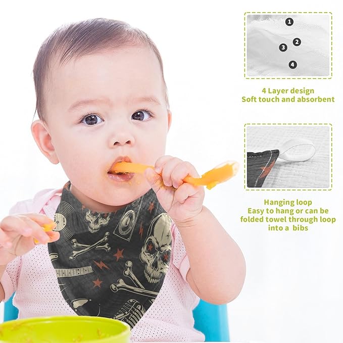 vvfelixl Baby Muslin Washcloths Rock Skulls Baby Burp Cloths Cotton Baby Face Towel for Newborn Infants Boys Girls Soft and Absorbent 11.8 X 11.8 in, 3 Pack
