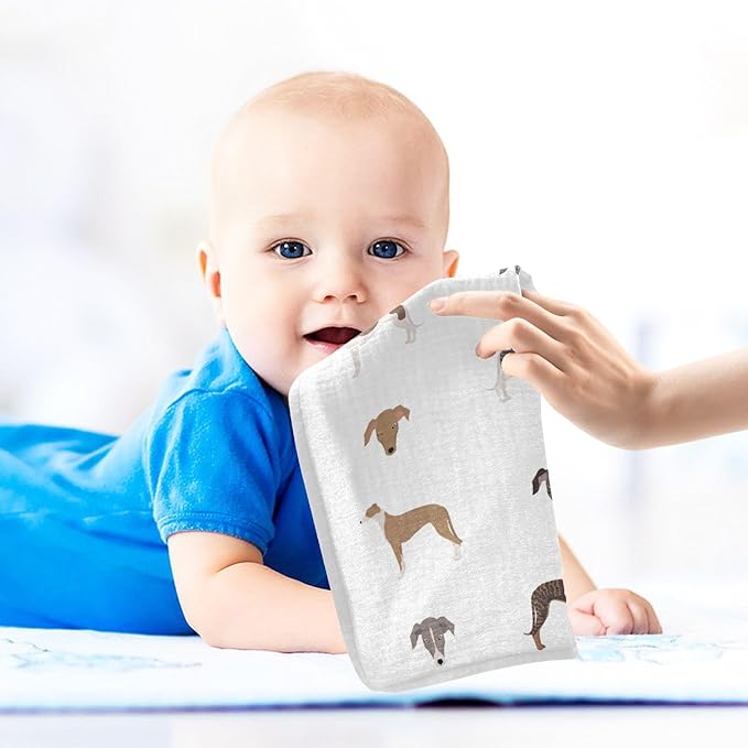 vvfelixl English Greyhound Dogs Baby Burp Cloths Baby Muslin Washcloths for Boys Girls Cotton Baby Face Towel for Newborn Infants Soft and Absorbent 11.8 X 11.8 in, 5 Pack
