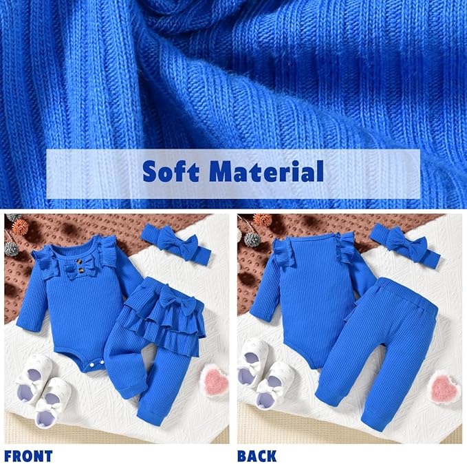 • UNIQUE FASHION DESIGN : Aalizzwell crew neck ribbed bodysuit with different colors theme, elastic waistband pants and matching headband. Easy diaper changing with snaps closure. Different fashion colors to choose, it looks especially cute! Every detail is designed for the baby, giving baby free space to grow up.